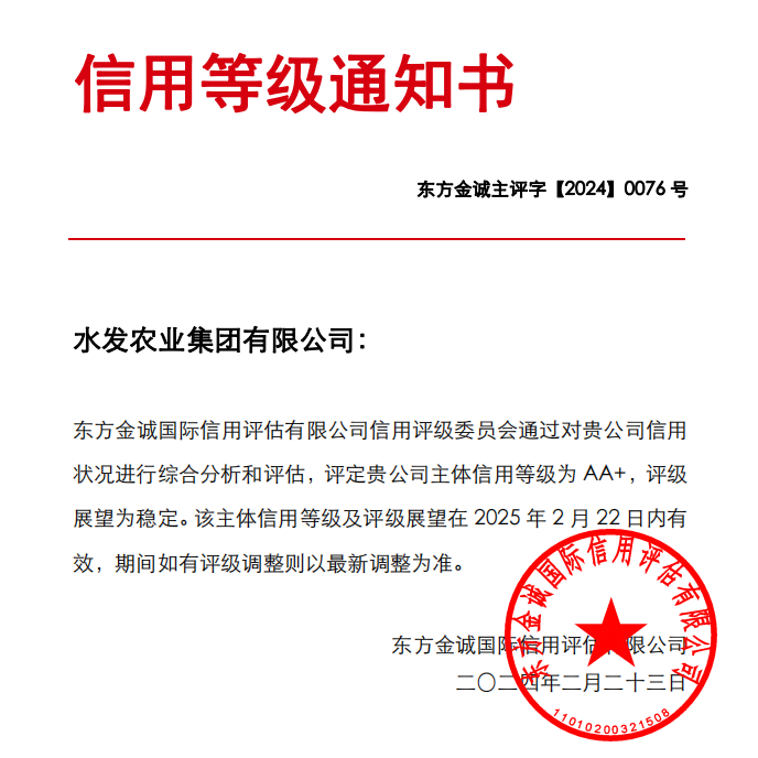 水發(fā)農業集團榮獲AA+主體信用評級